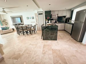 Déjate impresionar por los pisos de mármol y la cocina integral, equipada con una hermosa meseta desayunadora de granito. ¡Un verdadero placer para los amantes de la cocina!